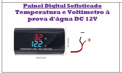 AdicionarPAINEL DIGITAL SOFISTICADO - 12V - TERMOMETRO E VOLTIMETRO A PROVA DE AGUA (EMB. COM 1 PECA- VALOR UNITARIO) - SIMILAR: - PC