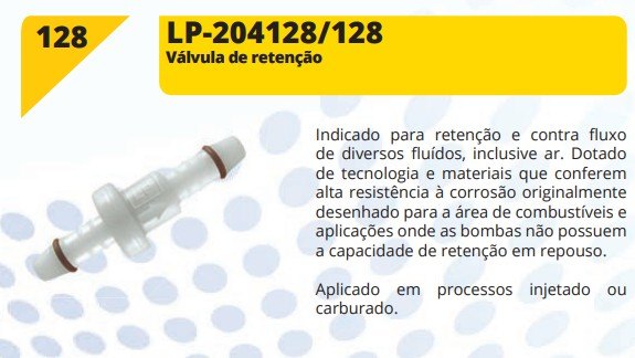 VALV. RETENCAO COMB. UNIVERSAL - SIMILAR: LP-204128/128 - UN