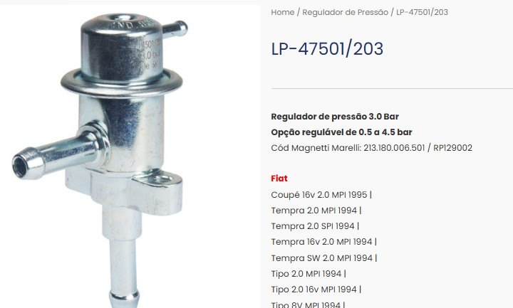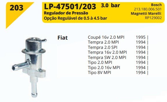 AdicionarREG.PRESSAO 3.0 BAR LINHA FIAT/ TEMPRA 2.0 SP - SIMILAR: LP-47501/203 - UN