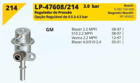 REG.PRES.3.0BAR BLAZER/S-10 2.2 MPFI 97 - SIMILAR: LP-47608/214 - UN