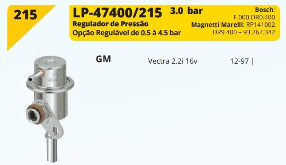 REG.PRESSAO 3.0 BAR LINHA GM VECTRA 2.21 1 - SIMILAR: F.000.DR0.400/RP141002/LP-47400/215 - UN
