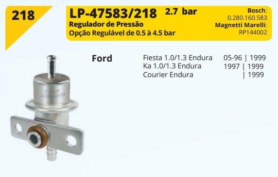 AdicionarREG.PRESSAO 2.7 BAR FIESTA 1.0/1.3 KA/ COURIER ENDURA - SIMILAR: 0.280.160.583/RP144002/LP-47583/218 - UN
