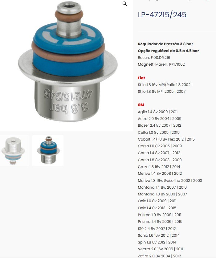 REG.PRESSAO 3.8 BAR LINHA GM COSA/CELTA MO - SIMILAR: LP-47215/245 - UN