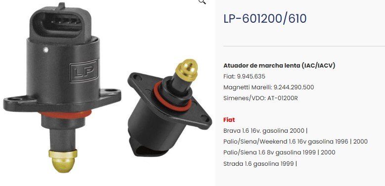 AdicionarATUAD. MARCHA LENTA FIAT/PALIO/SIENA/STRAD/BRAVA - SIMILAR: 9.945.635/9.244.290.500/LP-601200/610 - UN