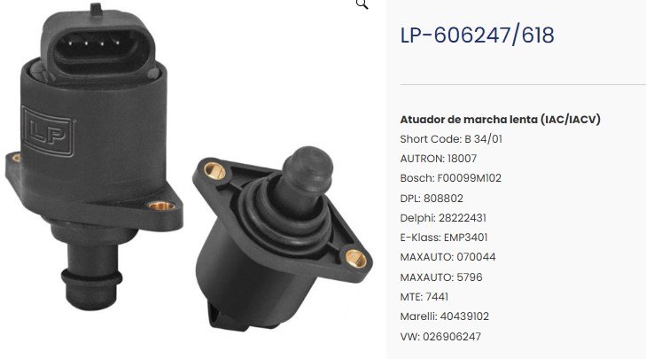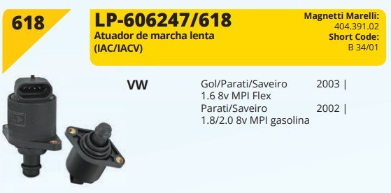 AdicionarATUAD. MARCHA LENTA LINHA VW GOL/PARATI/SAVEIRO/1. - SIMILAR: GS6802/LP-606247/618 - UN